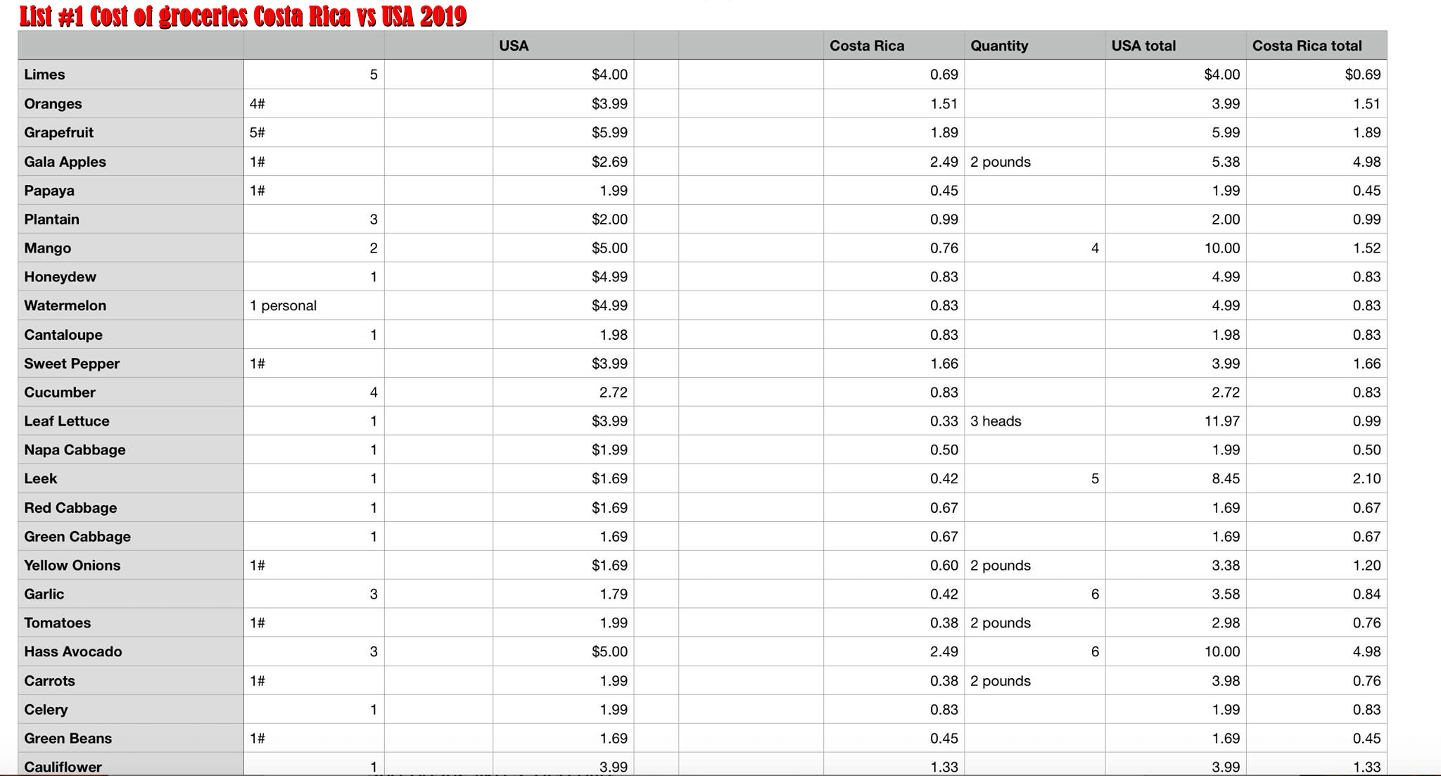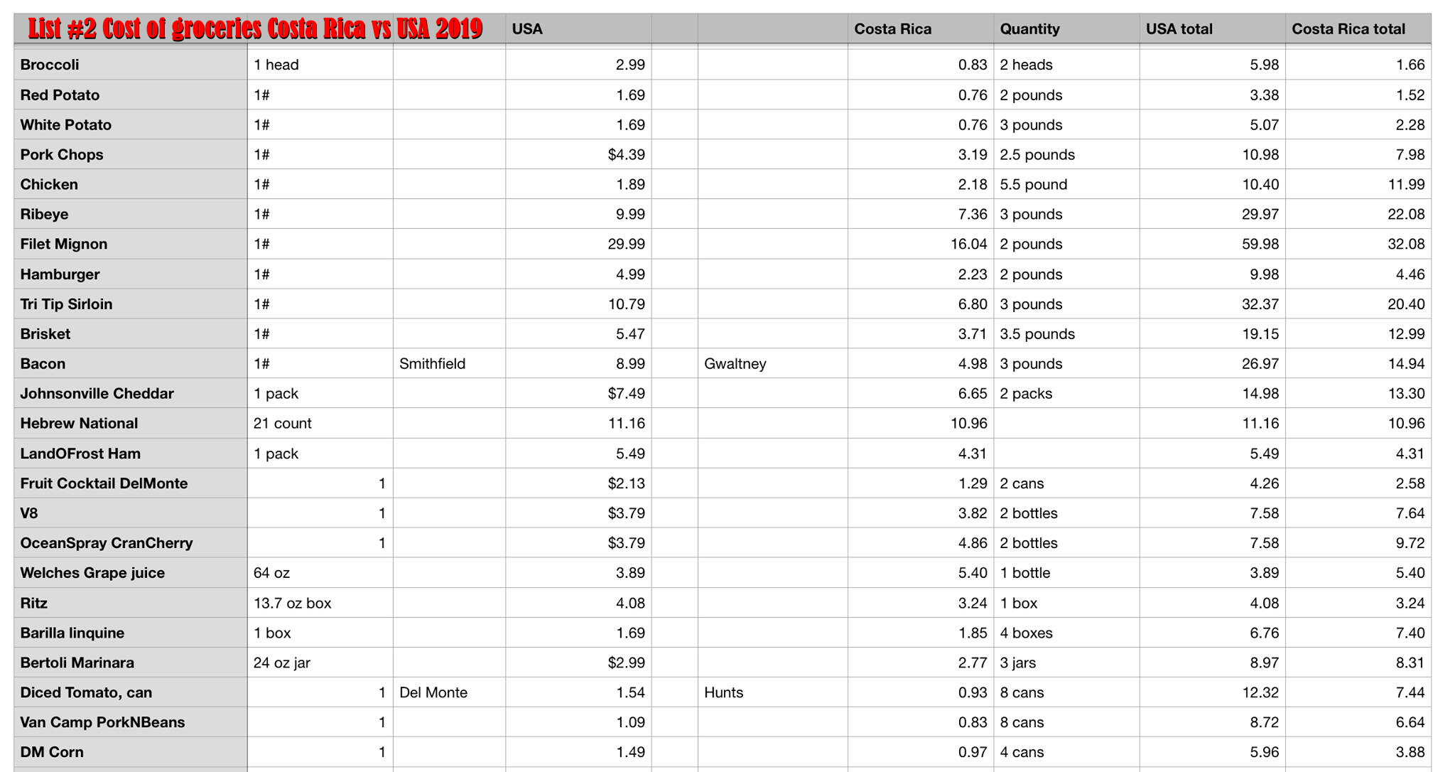 Download list #5 Cost of groceries Costa Rica vs USA 2019.